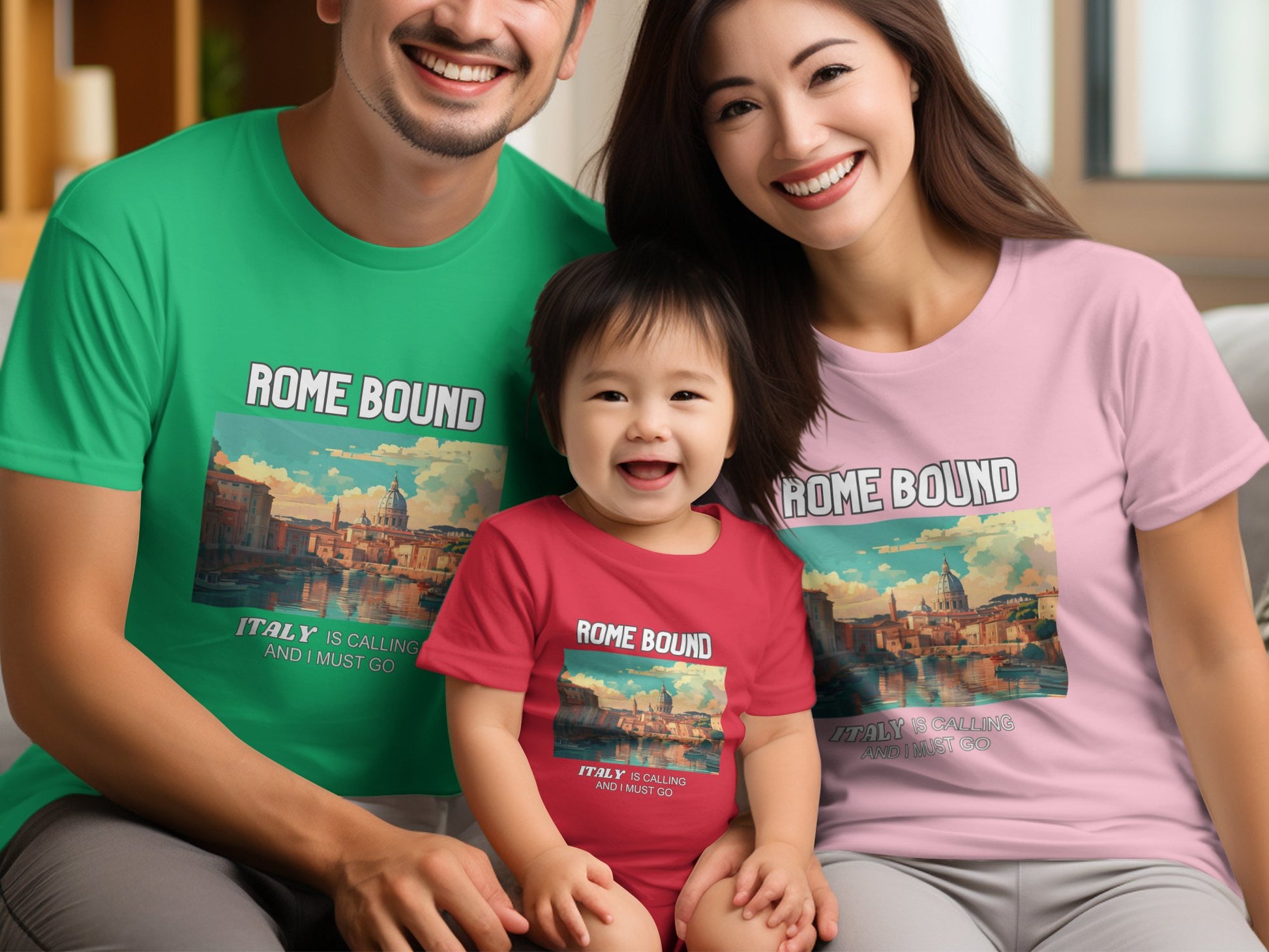 Rome Bound Italy is Calling Travel Day T-Shirt for Men, Women, Kids & Babies. Perfect for Family Matching Set, Family Traveling Day T-shirt and Italy Trip